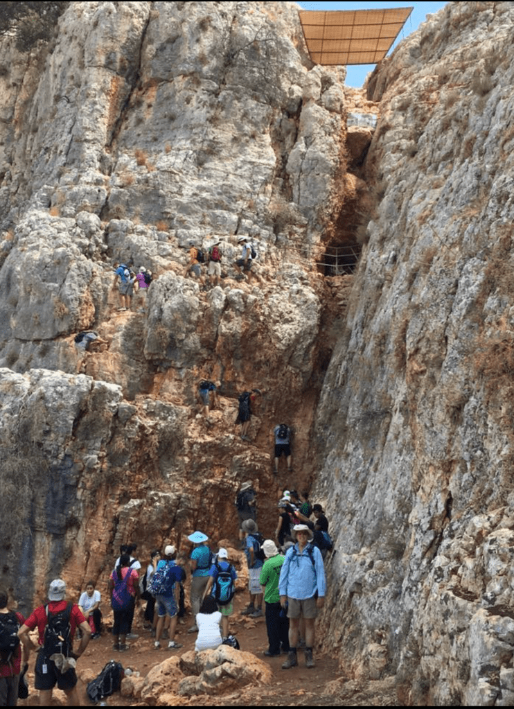You will pass over the “Horns of Hattin,” an extinct volcano with two peaks (horns) that are volcanic plugs. This is the site of the “Battle of Hattin” in 1187 A.D., in which the Crusader forces that controlled the land after the First Crusade were devastated by the Muslim troops led by Saladin. This marked the end of the Crusaders’ control of the land. You will then descend before you climb again to Mount Arbel. The Horns of Hattin