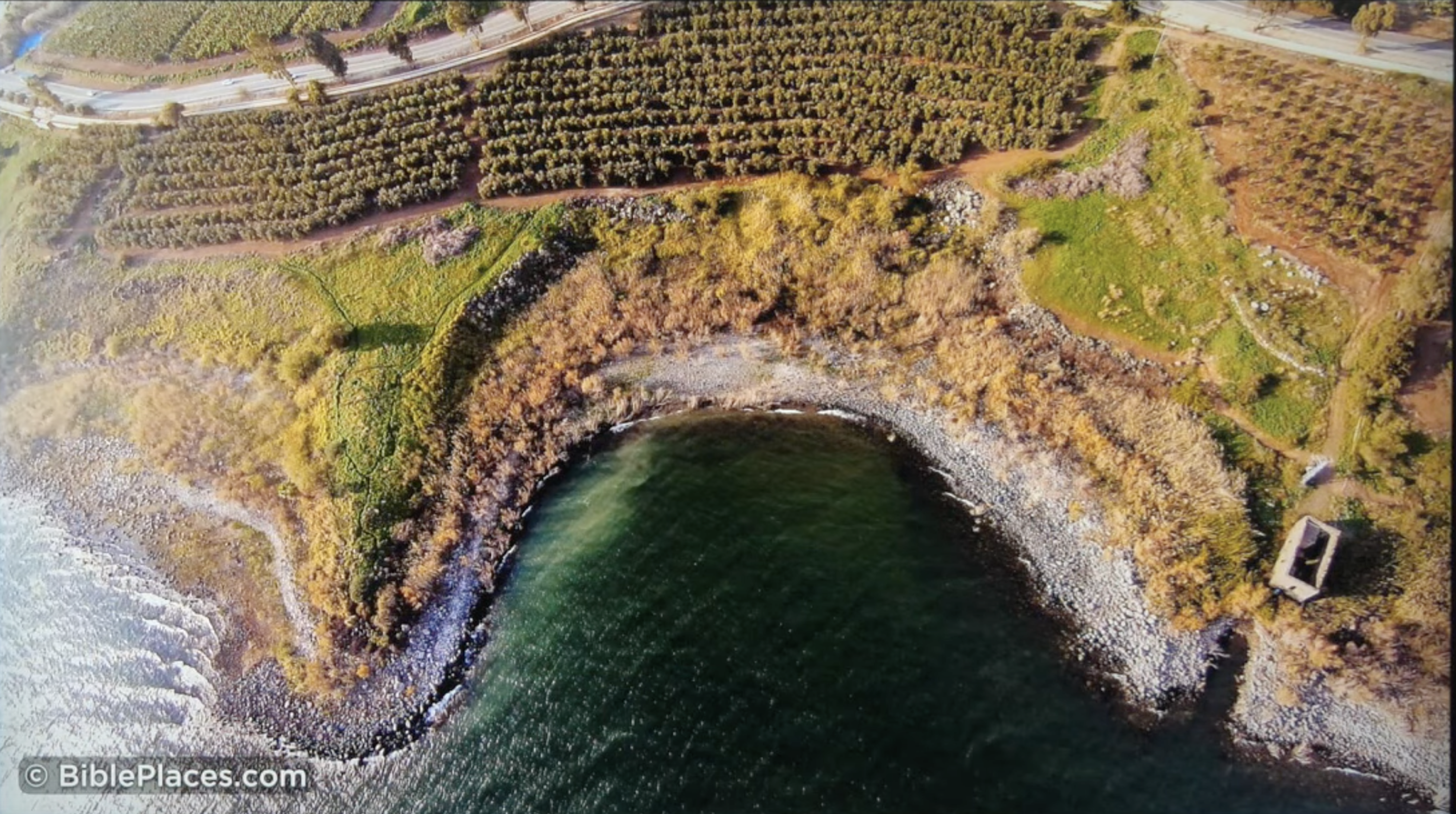 We are in the time when Jesus of Nazareth is at the height of his popularity. People are coming from everywhere to hear him speak or to be healed. Here in Capernaum, he goes out in the morning to the beach, and great crowds gather. So he does as he has done before; he goes out in a boat so they can stand on the beach and hear him. There is a cove near there, which people today call “the cove of the sower.” You can see from this drone shot below that this would be a great place to teach a crowd, a natural amphitheater. As the people stand there on the beach, behind them are fields. This time of the year, the final harvesting of the wheat crop is completed, so the fields are sitting, waiting for the fall rains to soften the ground so they can be plowed and planted in September. So the crowd can overflow from the beach to the field.