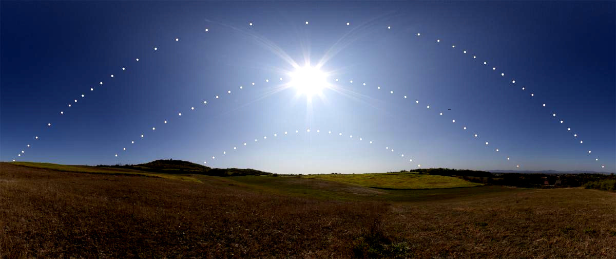 The days are getting shorter. Have you noticed it? There is less daylight every day. Today, there will be 4.5 fewer hours of sunlight than in June. Does anyone like that? It could be worse. The further north you live, the less daylight there is. This has to do with the tilt of the Earth’s axis and its position relative to the sun. This photo traces the sun’s path during the day from a very northern latitude, Greenwich, England.