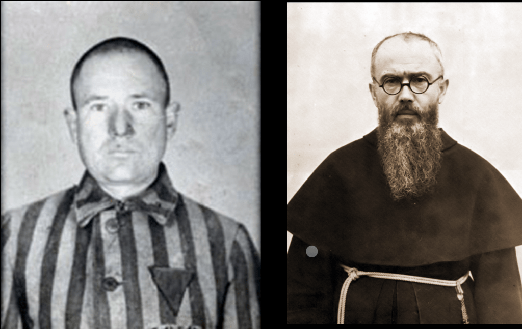 The man pictured above on the left is Franciszek Gajowniczek -He was a Polish soldier captured by Nazi troops and imprisoned in Auschwitz concentration camp. After one prisoner managed to escape, the commander of the prison ordered that in reprisal, ten prisoners would be chosen at random to die. Gajowniczek was one of the ten randomly chosen to die. But the man pictured on the right above, Raymund Kolbe, a Polish priest who was also a prisoner, volunteered to die in Gajowniczek’s place. He was killed by lethal injection on August 14, 1941. Gajowniczek survived the prison and the war and became a lay missionary. Kolbe took another’s punishment voluntarily. This is an act of love.